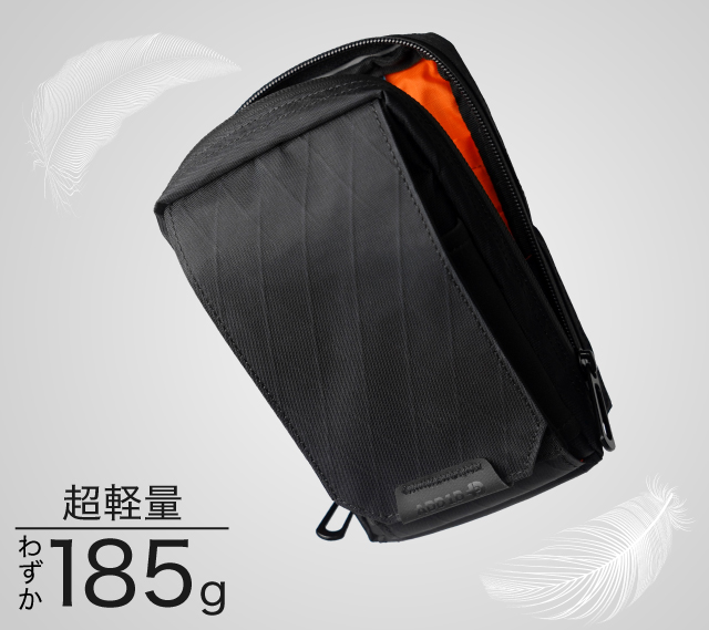 わずか185gと超軽量で、旅行やお出かけにも気軽に持ち運べます。 (ショルダーストラップを含むと240g)