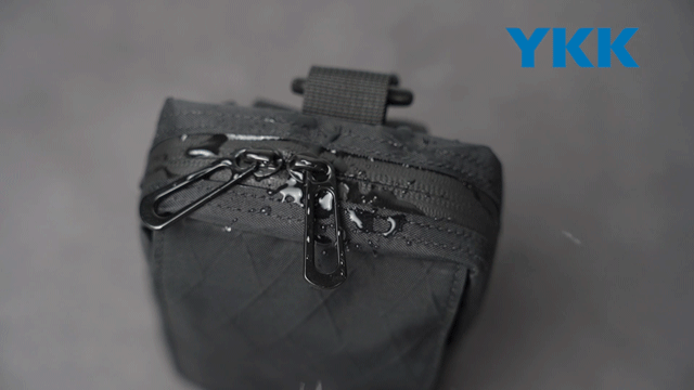 YKKアクアジッパーとは、表面をポリウレタンフィルムでラミネートし、止水性を持たせる処理を施したファスナーです。
